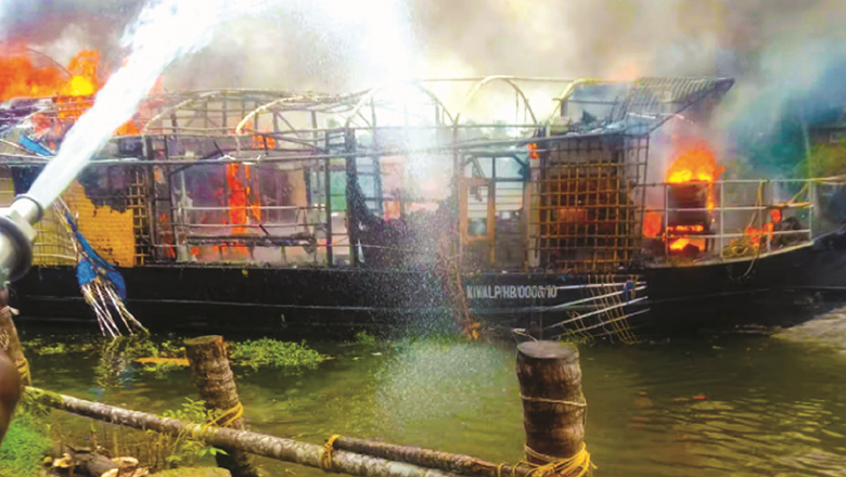 ഹൗസ്ബോട്ട് കരയോട് അടിപ്പിച്ചിട്ടതിന് പിന്നാലെ തീ പടർന്നു; ഫയർഫോഴ്സും നാട്ടുകാരും ചേർന്ന് ബോട്ട് വെള്ളത്തിൽ മുക്കി; ആലപ്പുഴയിൽ വിനോദ സഞ്ചാരികൾക്ക് അത്ഭുതകരമായ രക്ഷപെടൽ