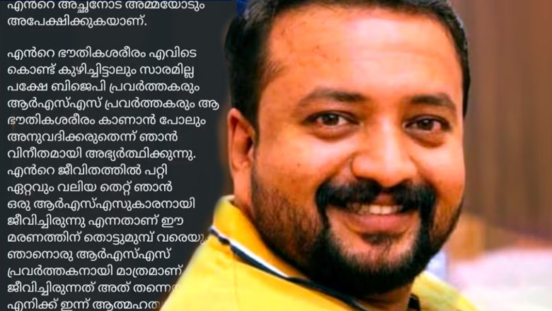 ‘ബി​ജെ​പി പ്ര​വ​ർ​ത്ത​ക​രെ എ​ന്‍റെ ഭൗ​തി​ക ശ​രീ​രം കാ​ണി​ക്ക​രു​ത്’: മ​ത്സ​രി​ക്കാ​ൻ സീ​റ്റ് കി​ട്ടി​യി​ല്ല; ആ​ത്മ​ഹ​ത്യാ കു​റി​പ്പ് എ​ഴു​തി​വ​ച്ച് ബി​ജെ​പി പ്ര​വ​ർ​ത്ത​ക​ൻ ജീ​വ​നൊ​ടു​ക്കി