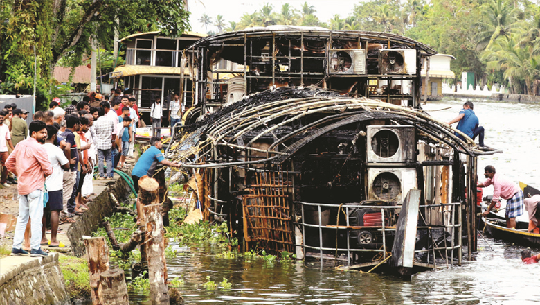 കരയില്നിന്നവരാണ് ബോട്ടില് തീ പടരുന്നത് ആദ്യം കണ്ടത്. ഉത്തരേന്ത്യയില്നിന്നുള്ള ദമ്പതികളാണ് ബോട്ടില് അതിഥികളായുണ്ടായിരുന്നത്. ഉച്ചഭക്ഷണത്തിനായി കരയോട് ചേര്ത്ത് ബോട്ട് അടുപ്പിച്ചിരിക്കുകയായിരുന്നു.