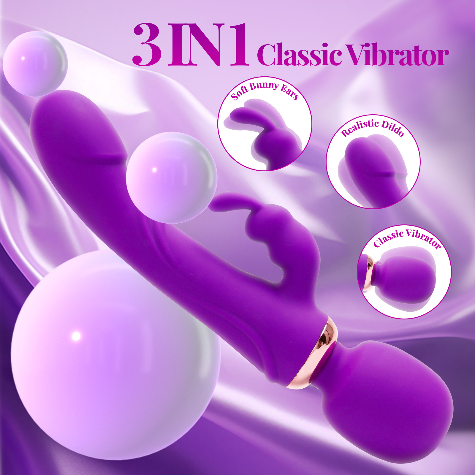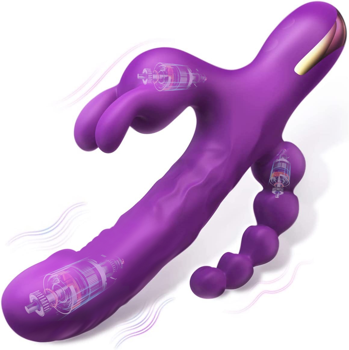 3 In 1 Rabbit Vibrator G Spot Dildo Vibrator Adult Sex Toys for Women