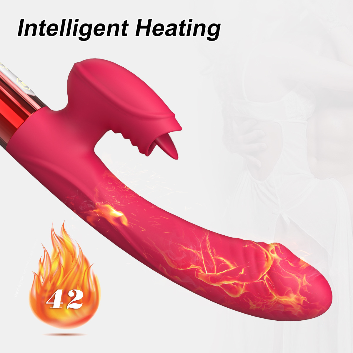 3-in-1 Heating Tongue Licking Sex Toy Rabbit Vibrator Rod For Women