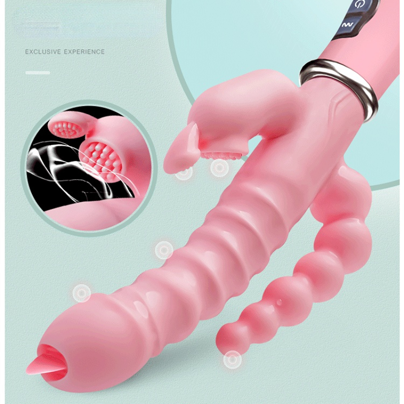 4-in-1 Telescopic Heated Tougue Licking Vibrator G Spot Couple Vibrator with Heat Head