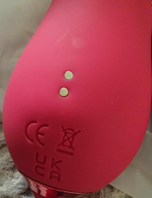 I included a picture of what I am talking about when I say don't cover the hole. The hole is there to help with the suction feature of this toy. I saw this and was curious about it so I ended up covering. This hole is there to allow air to come through and then be released when that feature is being used. When the hole is covered, the suction feature does not work and makes a loud noise because it's trying to suction. Honestly, I thought this was where I plug it in to charge but the charger has a magnetic connection where the small metal dots are at. The plug is a strong magnet and does take a little effort to remove the plug. Overall, this is a lot of fun and really easy to change between it's different features.