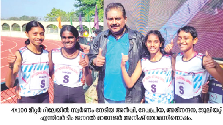 പിന്നീട് 4×100 മീറ്റര് റിലേയില് കേരളം സ്വര്ണം നേടിയപ്പോഴും അന്വിയുടെ സാന്നിധ്യമുണ്ടായിരുന്നു. അന്വിക്കൊപ്പം ദേവപ്രിയ ഷൈബു (സിഎച്ച്എസ് കാല്വരി മൗണ്ട്, ഇടുക്കി), അഭിനന്ദന രാജേഷ് (കാല്ഡിയന് സിറിയന് എച്ച്എസ്എസ്, തൃശൂര്), ജൂലിയറ്റ് ഷബിന് (ജിവി രാജ) എന്നിവരായിരുന്നു സ്വര്ണത്തിലേക്ക് ബാറ്റണ് കൈയിലേന്തിയത്.