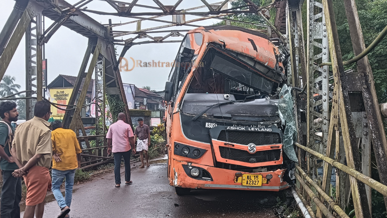 പാലത്തിലേക്ക് പ്രവേശിക്കുന്നതിന് മുന്പ് ബസ് റോഡ് വിട്ട് മണ്ണിലൂടെ തെന്നിമാറി പാലത്തിന്റെ വലതു ഭാഗത്തെ വലിയ കരിങ്കൽ തൂണിൽ പിൻഭാഗം തട്ടുകയായിരുന്നു. പിന്നീട് പാലത്തിന്റെ ഇടതുവശത്തെ ഇരുമ്പ് ചട്ടക്കൂടിലേക്ക് ഇടിച്ചുകയറി. ഇടിയുടെ ആഘാതത്തിൽ മുൻഭാഗം പൂർണമായും തകർന്നു.